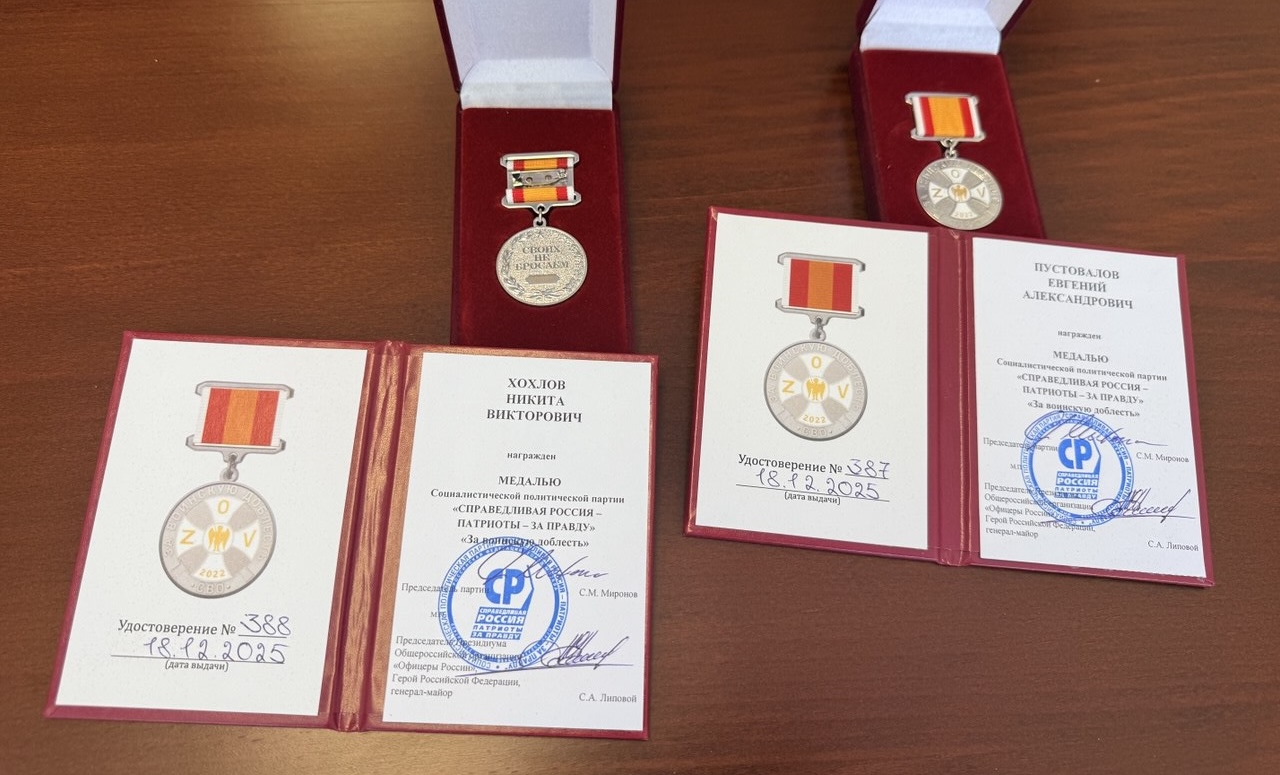 В Забайкальском региональном отделении партии "СПРАВЕДЛИВАЯ РОССИЯ" событие, которым по праву гордятся. Двух наших активных однопартийцев, участников специальной военной операции, удостоили высокой награды – медали партии "За воинскую доблесть". Этой наградой отмечаются боевые заслуги, выдающиеся достижения, проявленные отвага и доблесть в ходе СВО, подвиги по защите Русского мира.